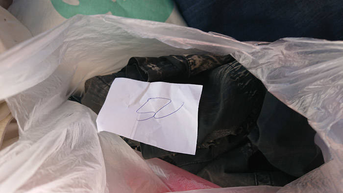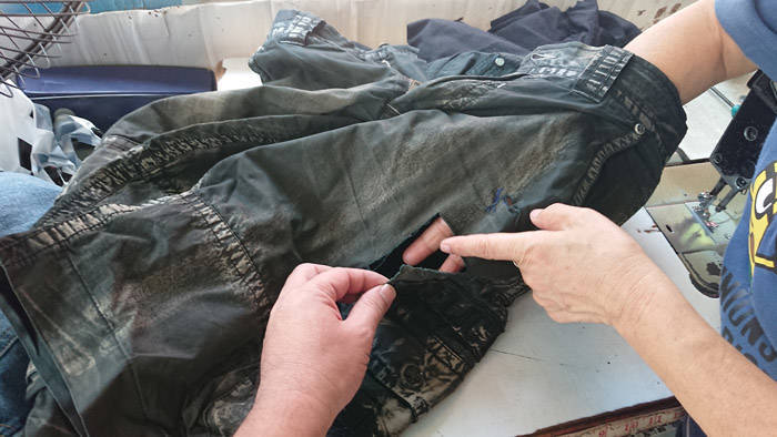 お店にはこれから直す服と治し終わった服が大量に積まれています。