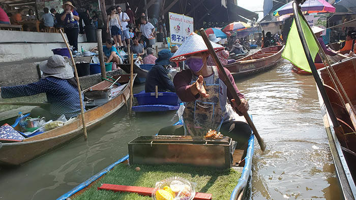 ボートで食べ物を売っている人もたくさんいるので飲み食いに困る事はありません。