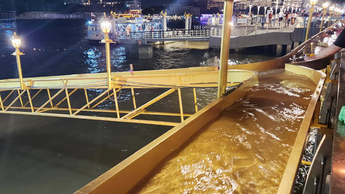 流し器の水流はかなり速く、祈りの込められたクラトンは一瞬で見えなくなりチャオプラヤ川へと流れていきます。
