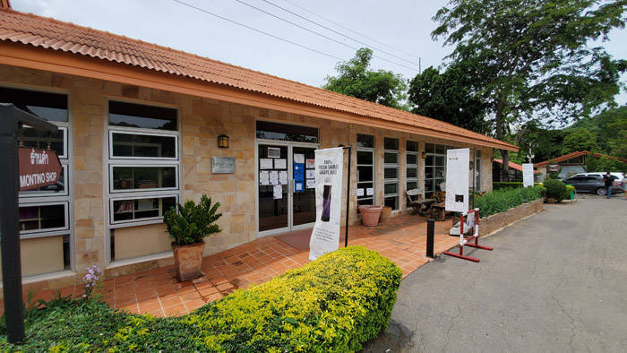 グラモンテの入り口そばにある建物は売店とカフェになっています。ツアー参加車はこちらの建物が集合場所となっています。