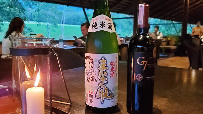 さらにワインも注文。そして持ち込みのお酒も登場です。店員さんに聞いたら持ち込んだものを飲んでもいいとの事だったので、ワインと共にお酒も飲みます。