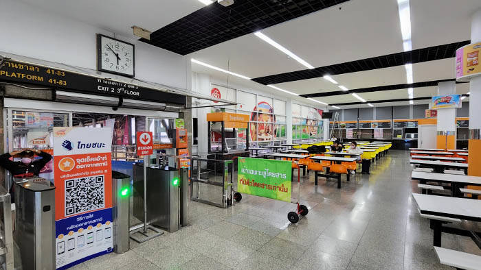 チケットを購入したらバス乗り場までいきます。早朝で開店前のフードコートから出て、バス乗り場へ向かいます。