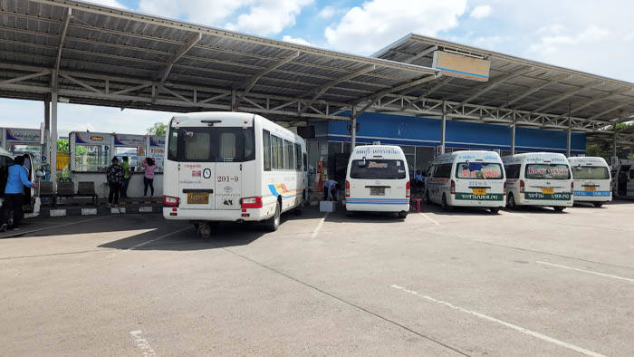ピマーイ行のバスに乗るにはバンがたくさん止まっている所に移動します。その辺にたくさんいるターミナルの係の人に『ピマーイ』といえば教えてくれます。