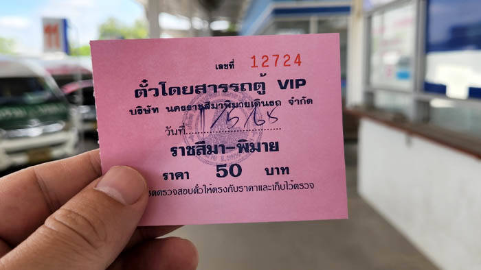 チケットはこちらになります。ピマーイまでのバスの料金は50バーツ。